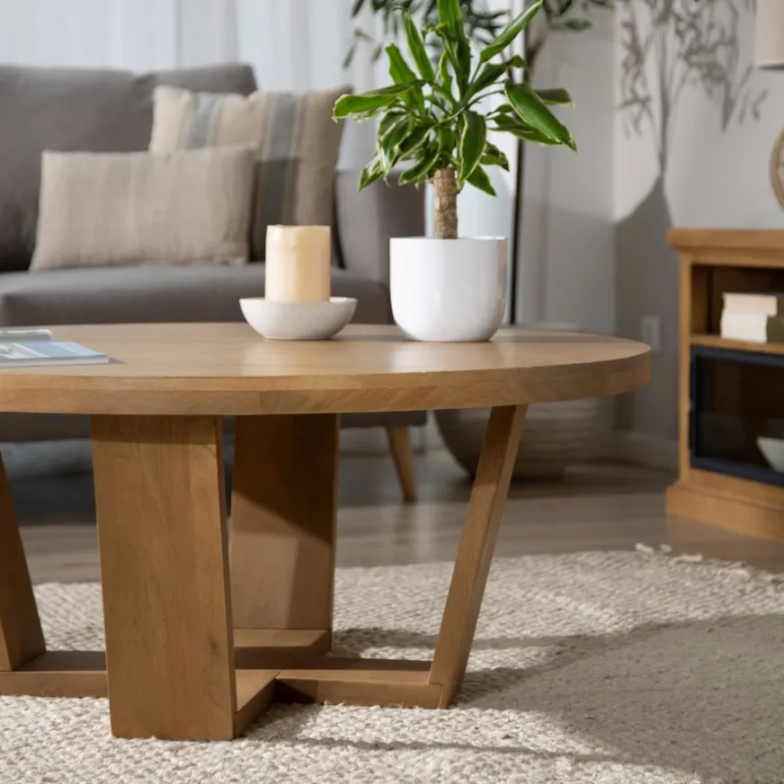 Embellissez votre salon avec la table basse Amaia. Son design rond en bois et sa finition naturelle de 110 cm de diamètre ajoutent chaleur et style à votre maison.