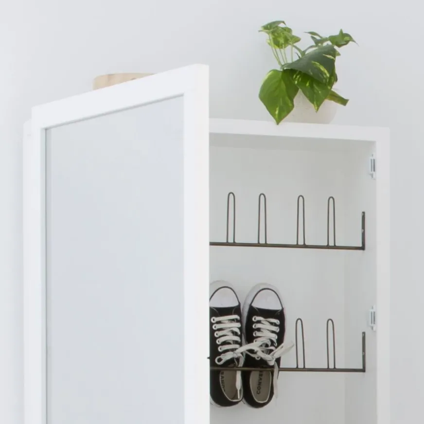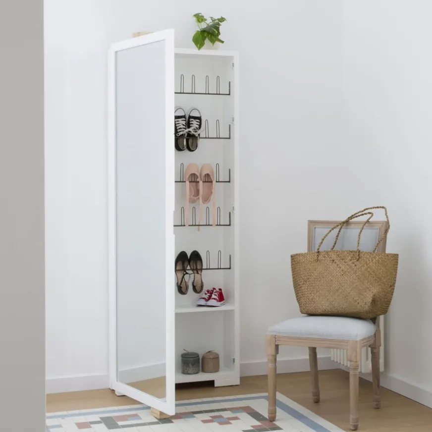 Banak Asue Chaussures étroit en bois laqué blanc avec miroir