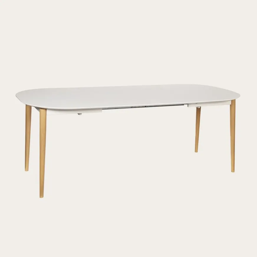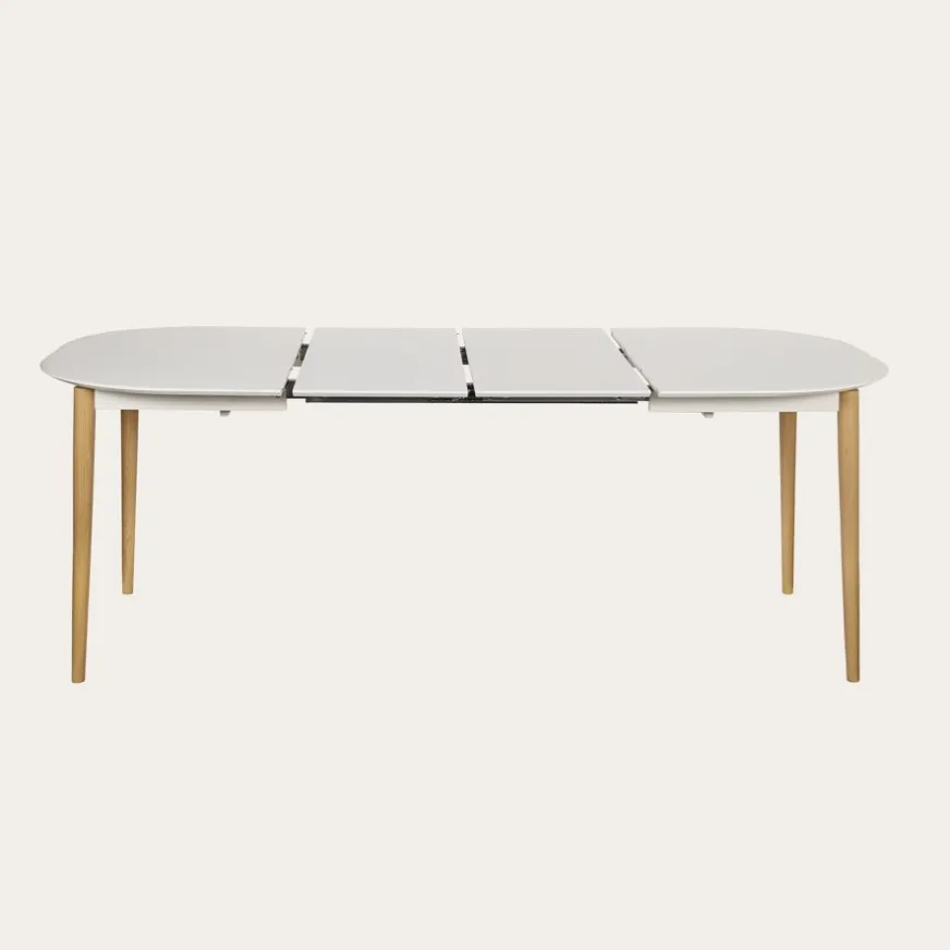 Banak Icara Mesa de comedor extensible ovalada 120/220 lacada en blanco y natural