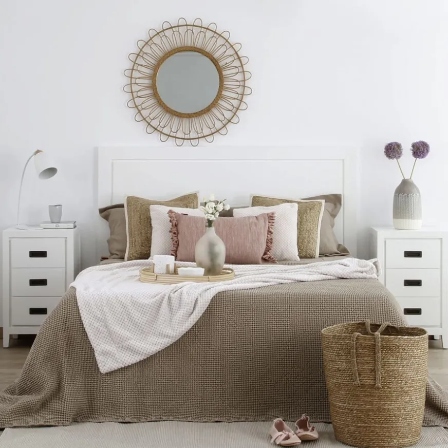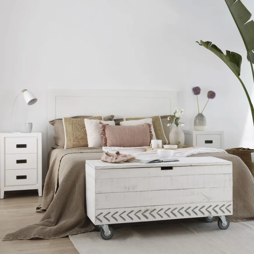Le Kehra tête de lit en bois pour lit de 150 et 160 de style oriental est notre modèle de tête de lit le plus universel. Ses lignes droites et son design épuré en ont fait un véritable leader des ventes, capable de laisser toute la vedette aux autres éléments de la chambre. Son finition blanche apportera de la luminosité à votre chambre. Vous pouvez compléter la pièce avec les tables de nuit de la même collection (KR-0101BC) ou choisir d’autres. Osez mélanger, mettez en valeur l’éclectisme dans votre maison et obtenez des résultats différents qui vous séduiront dès le premier regard.
