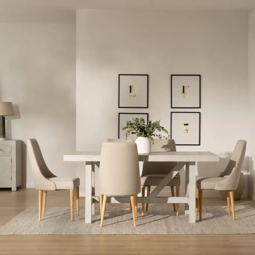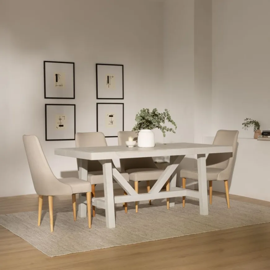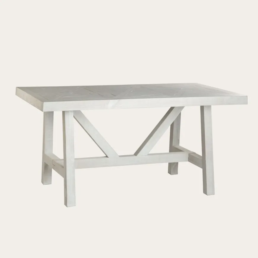 Fidèle à l’identité de la collection Milner, la table à manger rectangulaire en bois Milner arbore une finition exclusive en Blanc Wash, qui met en valeur la richesse et la texture des bois recyclés. De plus, son dessin géométrique caractéristique de son plateau accentue le caractère distingué de cette pièce imposante. Elle est conçue pour être la protagoniste principale de la salle à manger, en raison de son design et de ses proportions. Le fait qu’elle mesure 175 cm de long la rend idéale même pour six convives. En ce qui concerne la conception de la structure de ses pieds, nous soulignons à la fois son inspiration provençale et la section carrée formée par chacun des éléments qui donnent forme à la structure qui la soutient, apportant soutien et robustesse à l’ensemble de la pièce. La table à manger Milner est une pièce d’ébénisterie faite à la main, ce qui la rend unique. Les imperfections propres à cette collection sont une caractéristique qui la magnifie et met en valeur sa fabrication artisanale.