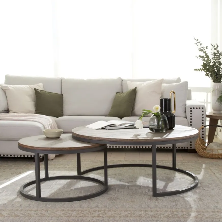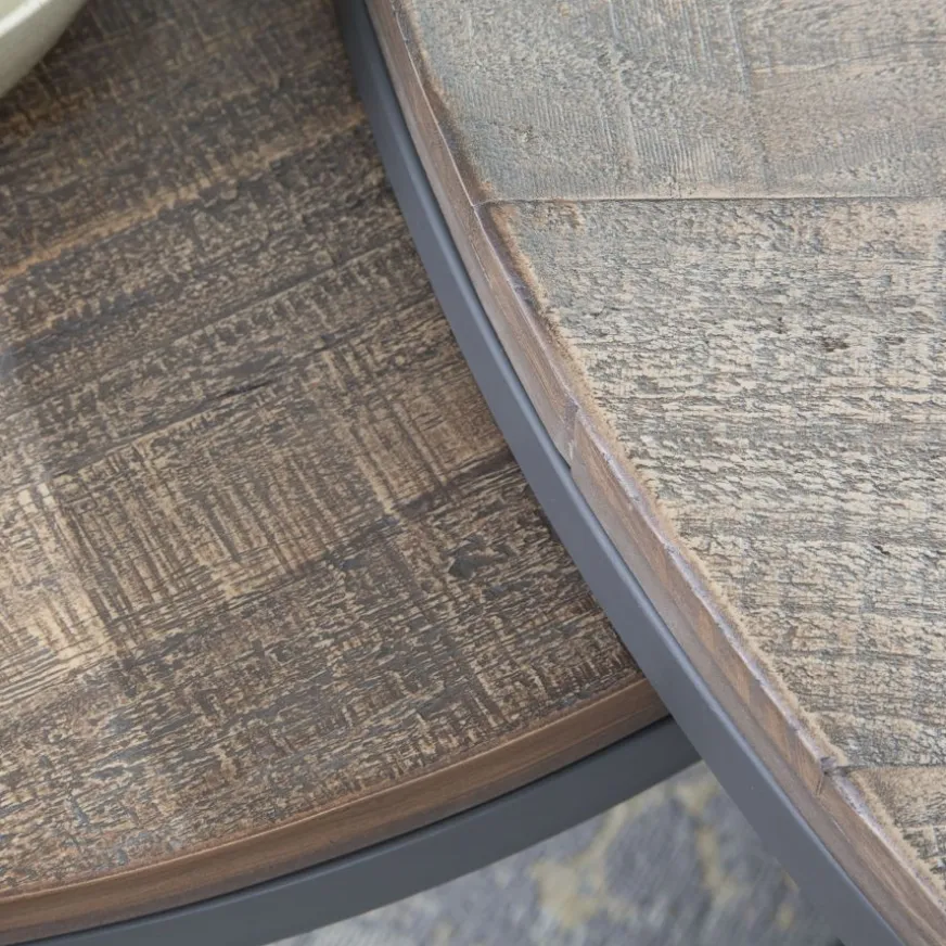 L’ensemble de 2 tables basses Nadine est la combinaison parfaite de style industriel et de fonctionnalité dans votre salon ! Avec un plateau en bois et une structure en métal, elles apporteront une touche unique à votre espace.