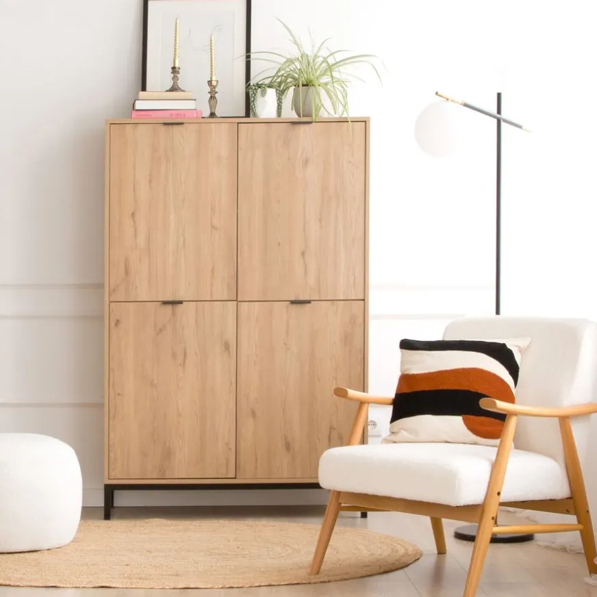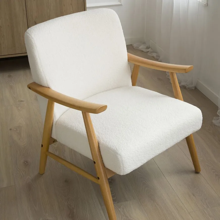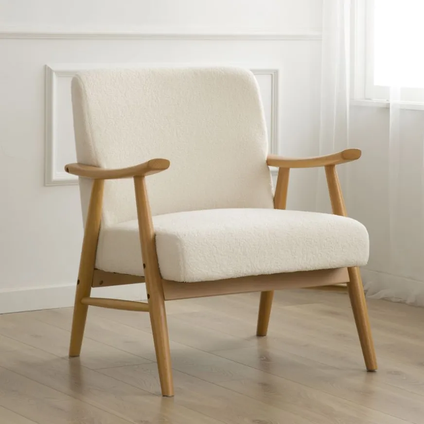 La combinaison du fauteuil Ohara en bois et recouvert de peluche crée une atmosphère chaleureuse. Détendez-vous dans ce fauteuil élégant et profitez de moments de tranquillité et de confort. Son design soigneusement élaboré offre une expérience unique et relaxante dans n’importe quel coin de votre maison.