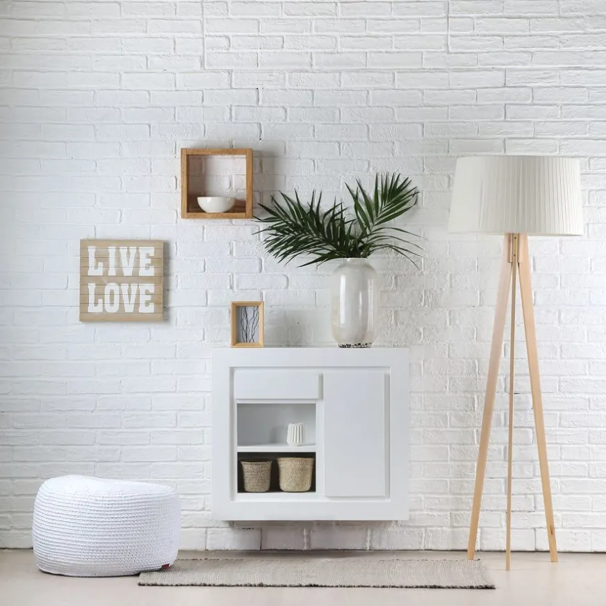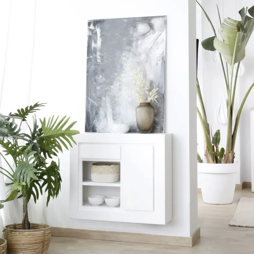 Le meuble d’entrée étroit suspendu Sebath vous fera tomber amoureux de votre maison dès le premier regard, grâce à son design aux lignes droites et au style minimaliste. De plus, ses dimensions mesurées avec une longueur de 75 cm, une hauteur de 65 cm et une profondeur de seulement 22 cm le rendent adapté à tous les types et tailles d’entrées. Fabriqué en bois et fini en blanc, il dispose d’une petite armoire, d’une étagère où vous pourrez mettre en valeur votre décoration et d’un petit tiroir pour y laisser vos clés ou d’autres objets que vous souhaitez avoir à portée de main avant de quitter la maison.