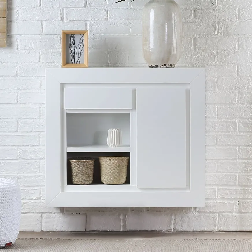 Banak Sebath Meuble d’entrée étroit suspendu laqué blanc