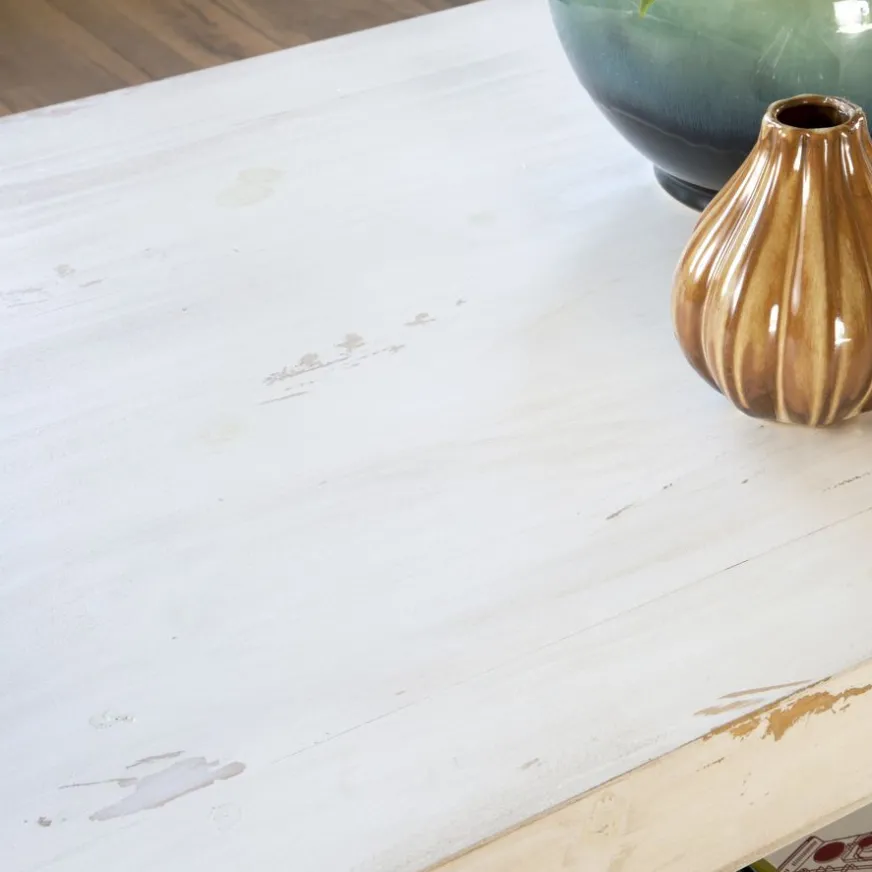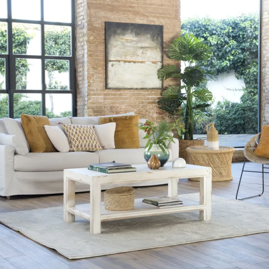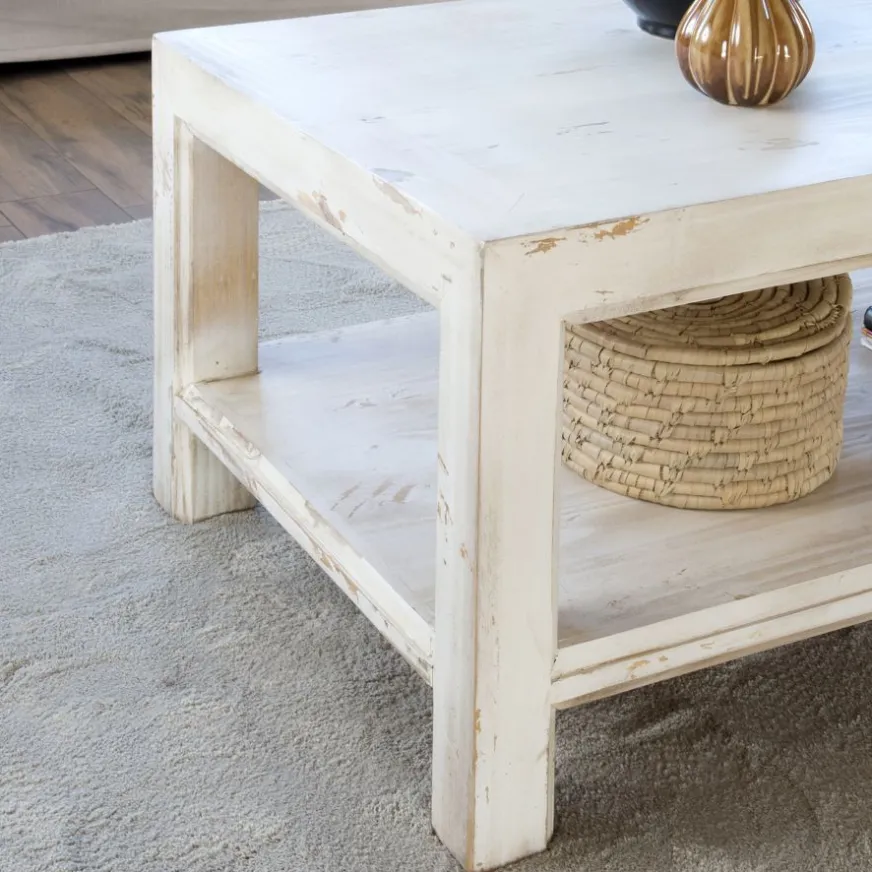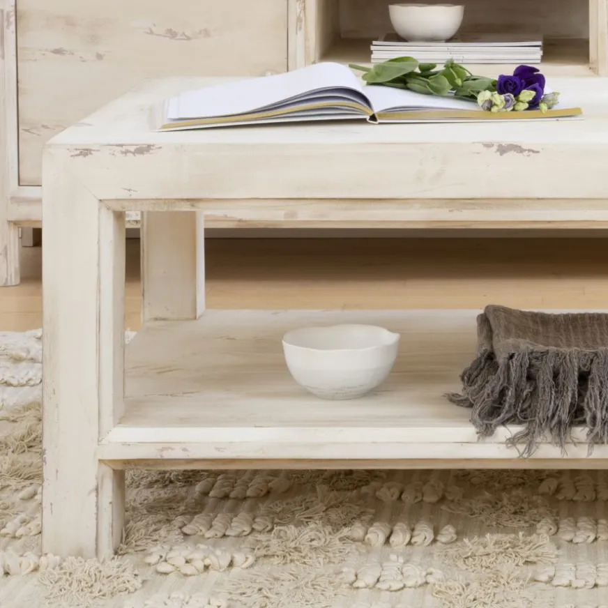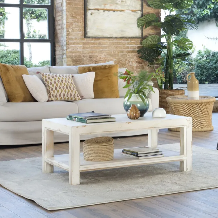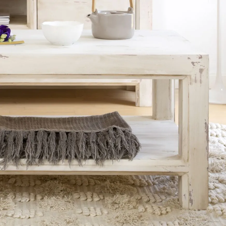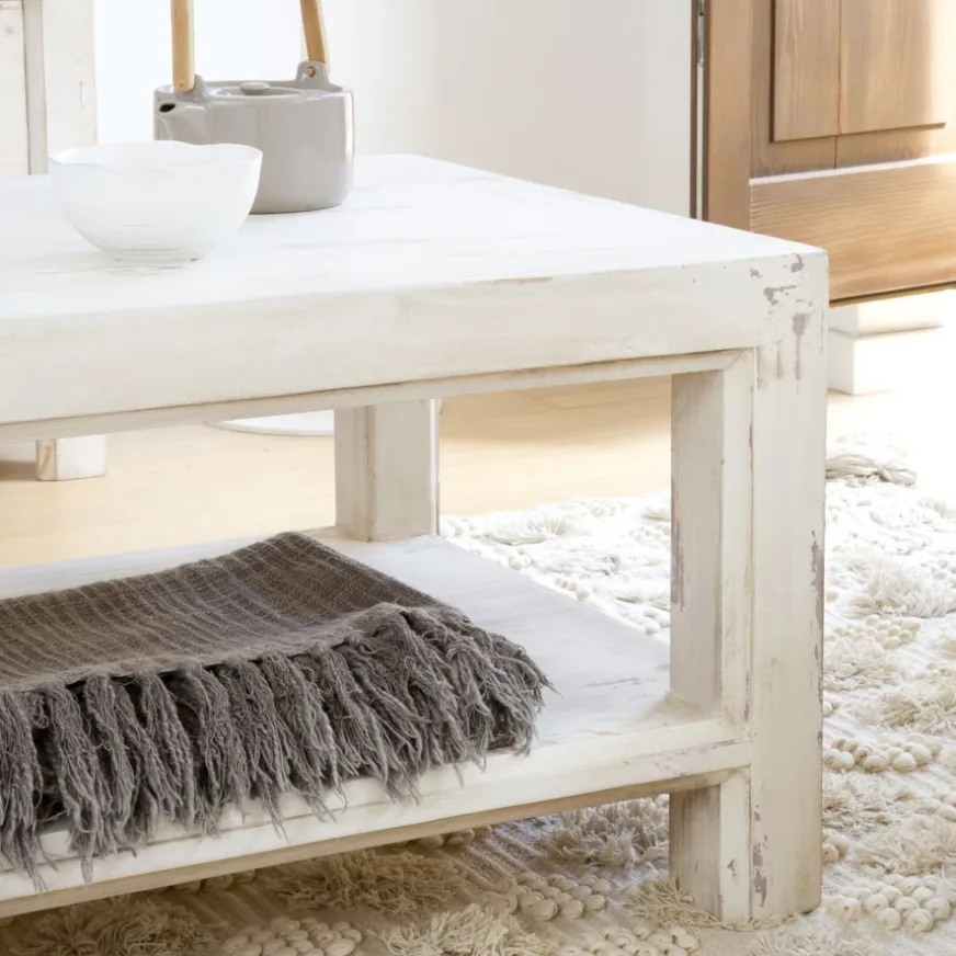 Banak Soho Table basse rectangulaire en bois massif de couleur blanc décapé