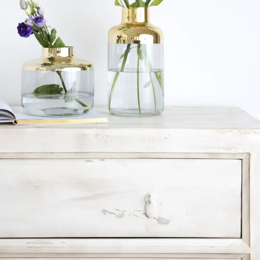 La commode en bois blanc délavé Soho est une pièce d’ébénisterie faite à la main, donc chaque pièce est différente. Les imperfections propres à cette collection sont une caractéristique qui la rend belle et met en valeur sa fabrication artisanale. Qu’attendez-vous pour intégrer ce meuble de rangement au design exclusif dans votre maison ?