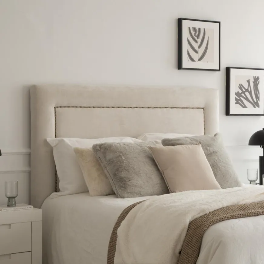 Notre tête de lit rembourrée Volga dégage du romantisme de tous les côtés. Disponible en différentes tailles pour des lits de 90 cm, 105 cm, 135 cm, 150 cm, 160 cm et 180 cm et dans différentes couleurs. Les clous qui parcourent linéairement trois des quatre côtés lui donnent un air éclectique très spécial qui le remplit de charme. De plus, sa hauteur de 120 cm facilitera son installation. Rejoignez la tendance du moment avec notre tête de lit rembourrée Volga et obtenez pour votre chambre l’esthétique que vous recherchiez.