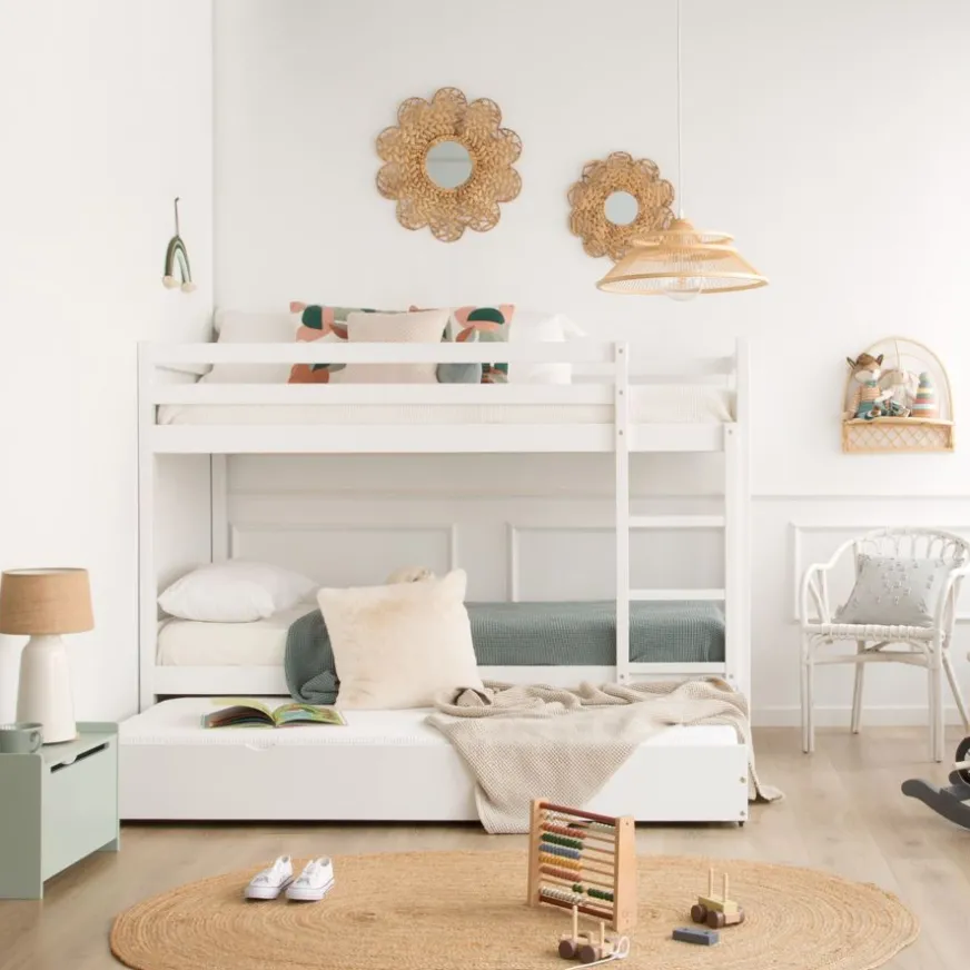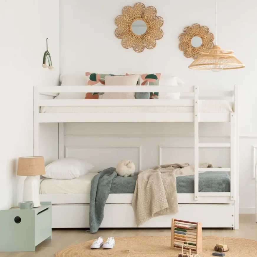 Enfant Banak Kivu Lit avec lit gigogne laqué blanc pour matelas 90×190